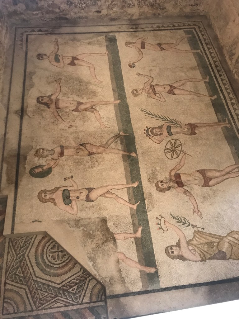 Designated as a UNESCO World Heritage, the Villa Romana del Casale is worth the short trip from the town of Piazza Armerina, Sicily (~ 3km). This ancient Roman villa or palace is known for its 40 beautiful mosaic floors. One could spend hours here exploring these decorative mosaics. This open-air museum differently should be part of your trip to Sicily. We booked our day trip using Viator We were given a relaxing 2 hours to explore the open-air museum.