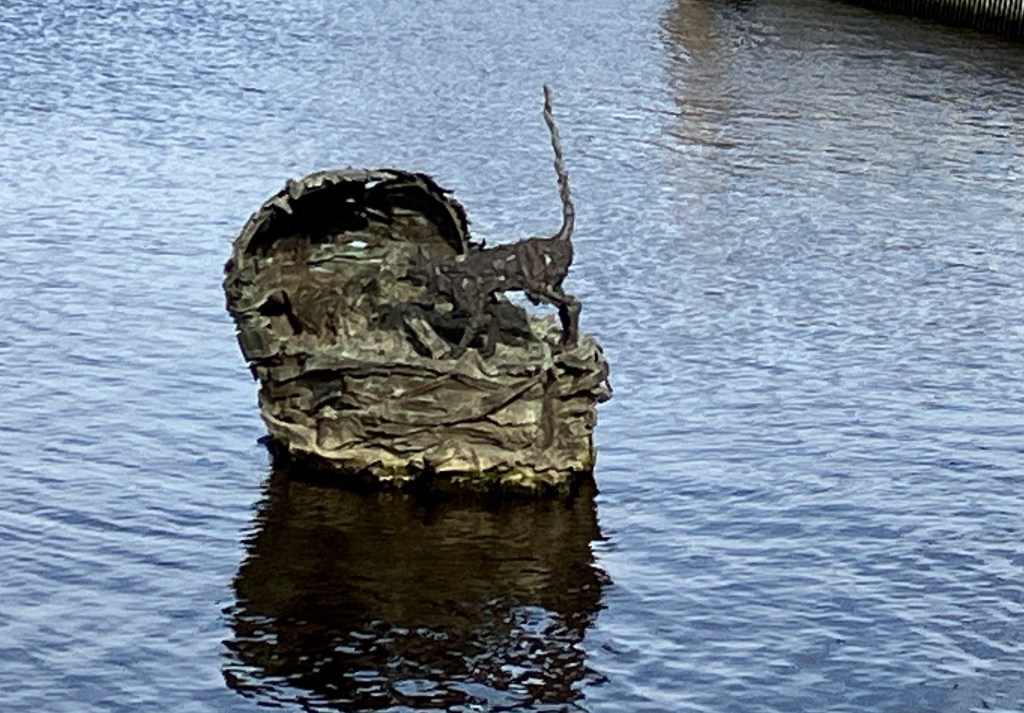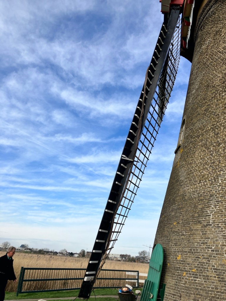 Kinderdijk means “children’s dike” and this cradle with a child and baby is referring to the St. Elizabeth flood of 1421, which took many lives. After the a local boy went to the inspect the damage at two dikes. He found a wooden cradle rocking in the water with a cat jumping back-and-forth to keep it afloat. An interesting story if not very believable.